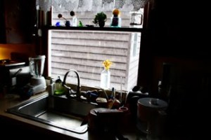 On my way to get a Fed Ex, I went to the door, and looked at a cluttered kitchen. My eye was grabbed by an orchid that was having its water changed. I went back to my office, and I took a couple of snaps. I think of it as an exercise, an exercise in visual literacy, or looking from the inside out.