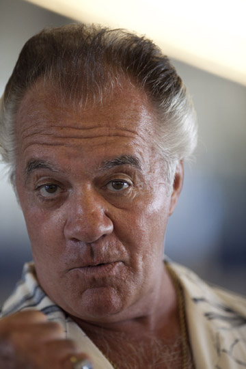 In the case of this spontaneous, informal non-lit environmental portrait of Tony Sirico, alias Paulie Walnuts of The Sopranos, while photographing the Yuri Foreman/Miguel Cotto pre-fight press conference, and weigh-in. Tony was chatting up a few of his “Gumbas,” I was moving to field level at Yankees stadium, picked the camera up, 300ml, 2.8, Gitzo monopod, ISO 800, 500/second at 208 (clean foreground and background) focused on eyes, 6 frames, before we stopped to just shoot the proverbial. He’s a Brooklyn boy, and he’s one of my pisanos.
