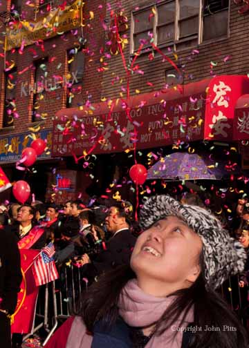 I think John really captured the ambiance of Chinese new years I really like the way lady is looking up at the confetti, great shot!